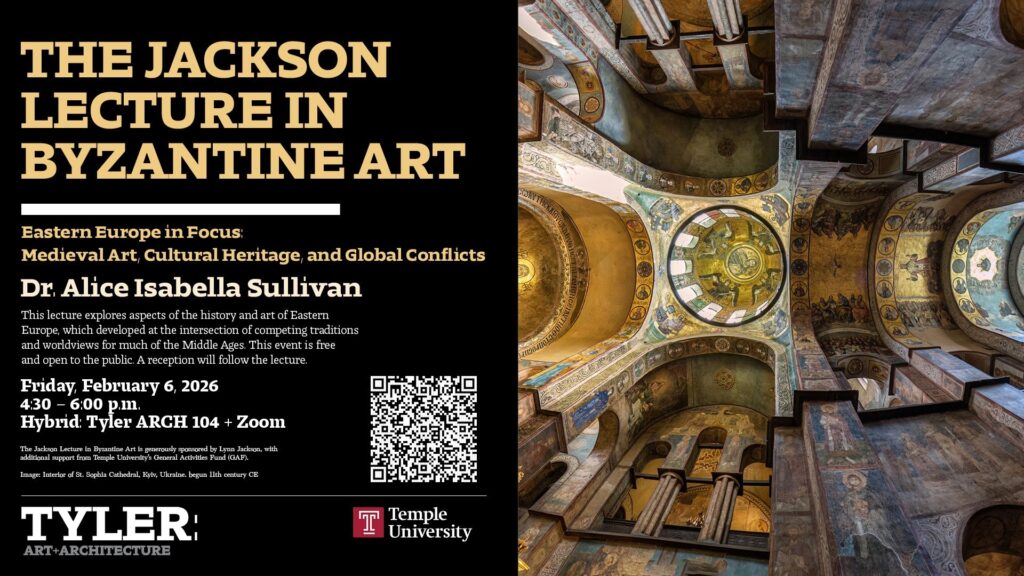 The event is free and open to the public. The Jackson Lecture in Byzantine Art is generously sponsored by Lynn Jackson, with additional support from Temple University’s General Activities Fund (GAF).